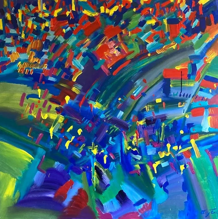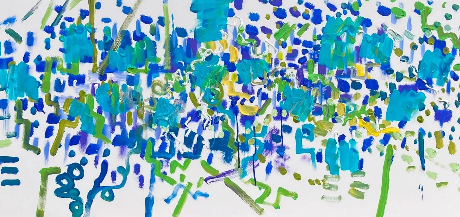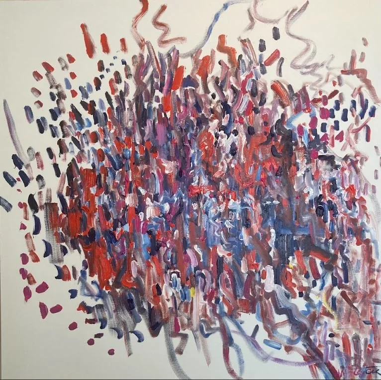 He creates art of acceptance and meditation in action. This is done through creating before conscious thought arises and present moment awareness sinks in.